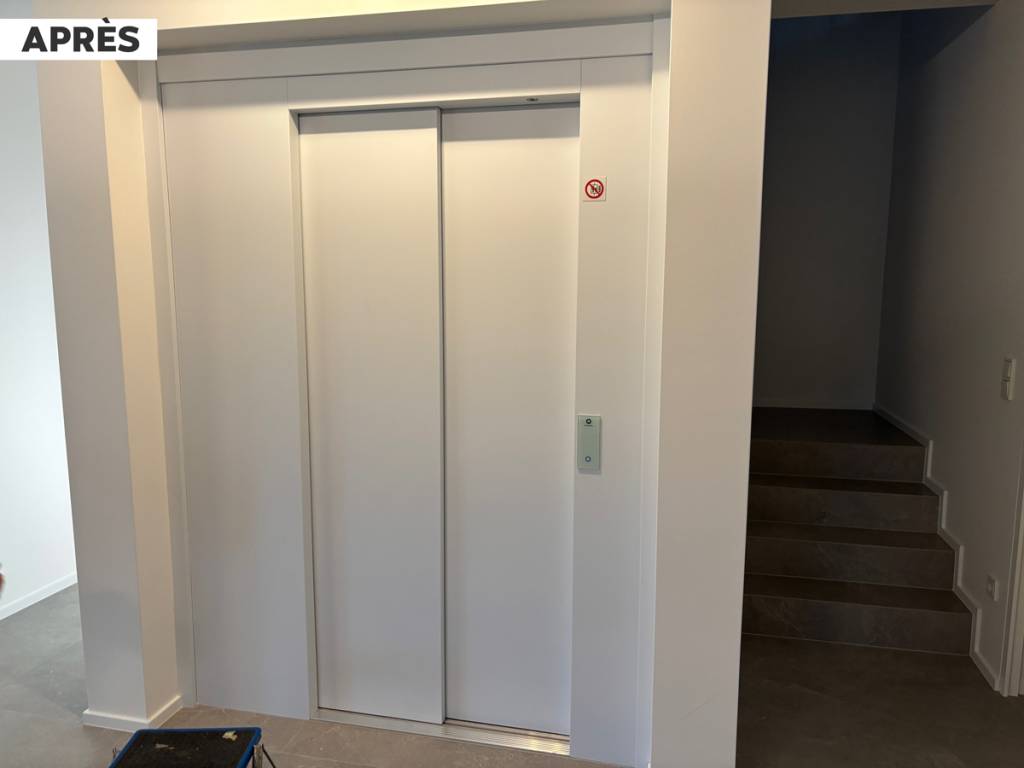 Full covering d'un habillage de paliers d'ascenseur. Pose par l'équipe Tac O Tac