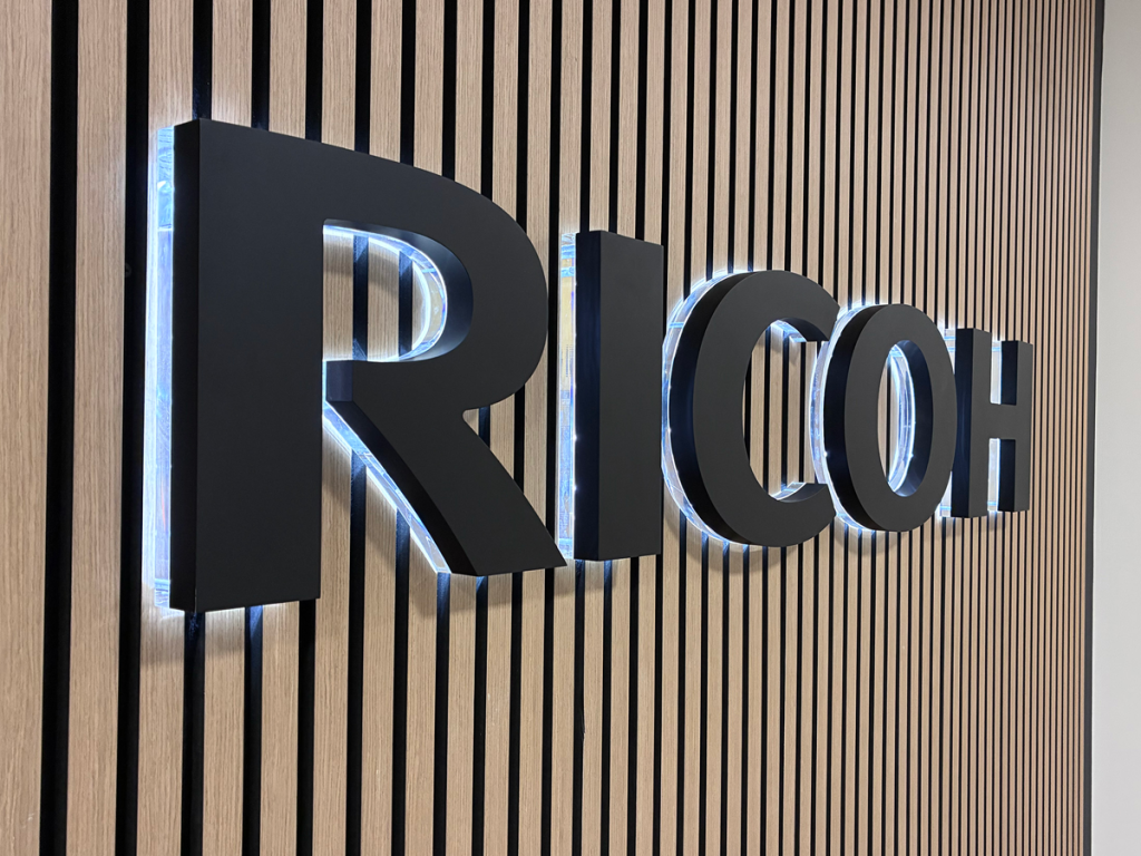 RICOH, luxembourg, bertrange, logo 3d, plexiglas, fraisage, rétro éclairage, led, décoration murale
