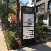Etre vu de loin est une nécessité. Installé devant un immeuble, en associant esthétique et signature graphique, un totem vous apportera un impact publicitaire certain. Lumineux ou non, la majeure partie de nos totems sont entièrement réalisés sur-mesure dans nos ateliers. Les possibilités sont nombreuses, tant du point de vue des matières que du design.